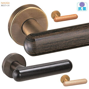 抗菌レバーハンドル 丸座 ドアレバーの詳細 ■材質:真鍮+積層 ■仕上:(ダークブラウン)(ウッド)(黒ウッド)(白木ウッド) ■丸座付 ■錠タイプ:標準空錠・チューブラ空錠・表示錠・間仕切錠 ※長座...
