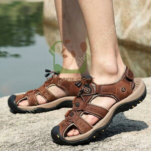 レザーサンダル メンズ 大きいサイズ マジックテープ ビーチサンダル 夏 アウトドア 疲れにくい 本革 ステッチ レジャー デイリー 川遊び 父の日