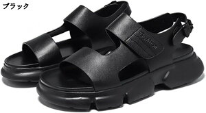 レザーサンダル メンズ スポーツサンダル マジックテープ 厚底 夏 ビーチサンダル アウトドアサンダル 痛くない 靴 履き心地よい 疲れにくい 黒 ファッション