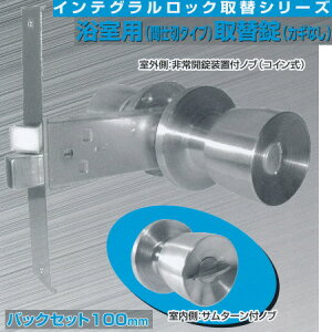 インテグラル錠が使われている浴室用アルミドアに対応します。 横框の狭いアルミドアにも対応します。ノブ仕様 室外側 非常解錠装置(コイン式) 室内側 サムターン 対応ドア厚(DT):23〜43mm バックセット(BS):100mm...