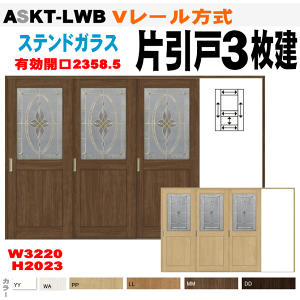 ステンドガラス組込 片引戸3枚建(Vレール方式)ASKT-LWB(クリエ)選択肢説明 ※選択肢にない他の仕様変更(リクシル ラシッサ カタログ掲載)も対応できます。注文の前に、電話でお問い合わせください...