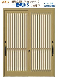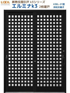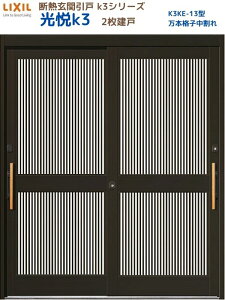 断熱玄関引戸(引き戸) 光悦K3 2枚建戸 ランマ無し 13型(万本格子中割れ) LIXIL/TOSTEM