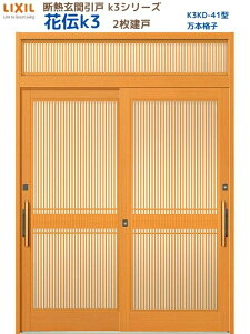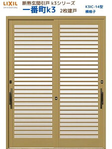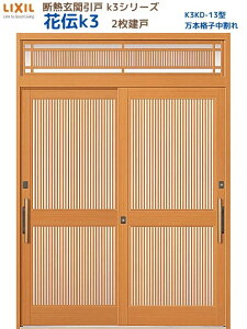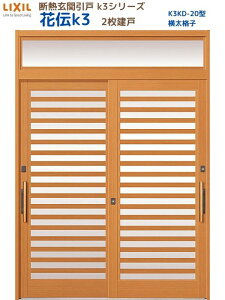 断熱玄関引戸(引き戸) 光悦K3 2枚建戸 ランマ付き 16型(柳格子) LIXIL/TOSTEM