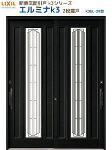 断熱玄関引戸(引き戸) 光悦K3 2枚建戸 ランマ無し 24型(面付格子) LIXIL/TOSTEM