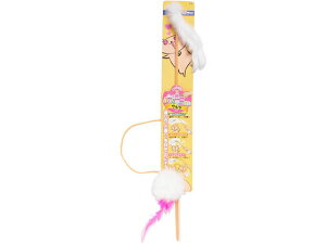ひもの長さ約80cmの釣竿タイプの猫じゃらし。ポンポンは100%天然羊毛。羊毛の匂いが狩猟本能をくすぐる。猫ちゃんが大好きな鳥の羽付き。化繊にはないあたたか