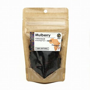マダガスカルの小農家が丹精こめて栽培した完熟ブラックマルベリーを、衛生的な施設で乾燥加工しました。砂糖を使用せず漂白や添加物も加えない自然な甘みが特徴です。ブラックマルベリーは、日本では「桑の実」と呼ばれ、ビタミンな