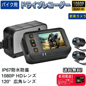 ドライブレコーダー バイク 前後カメラ IP67 全体防水 防塵 2イ