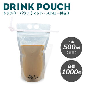 商品説明 ドリンクパウチ・キャップなしマットストロー付き500ml 1000枚 レジ袋不用!!持ち手付きパウチ容器になります。 今後、お客様には多く求められる商品です。オシャレで話題のSNSで映えも間違いなし! ・スタンドパウチで自立しま