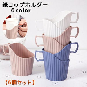 シンプルな持ち手付きの紙コップホルダー【6個セット】です。 水滴で滑りやすい冷たい飲み物や熱い飲み物にもオススメです。 【サイズについて】 画像をご参照ください。 【カラーについて】 生産ロットにより柄の出方や色の濃淡が異な