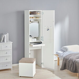 ■Product Details ・化粧品や小物がたくさん収納可能なドレッサーです。 サイズ ドレッサー:幅58.5×奥行41×高さ134.5(テーブル高さ71.5)cm スツール:幅32.5×奥行...