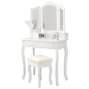 ドレッサーセット ホワイト 女の子が憧れる、クラシカルでオシャレなメイクドレッサー シンプルなシルエットの中のさりげない曲線がエレガントなドレッサーセット。ヘアスタイリングもしやすい三面鏡タイプ。嬉しいスツール付き...