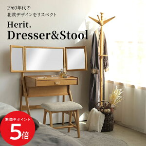 ドレッサー&スツール ヘリット HEM-3850NA // ドレッサー コンパクト スツール付き 化粧台 おしゃれ デスク テーブル コンセント付き 三面鏡 北欧 Herit. Mirror