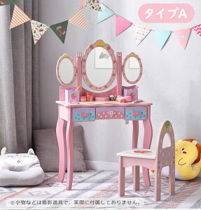 【一年保証/送料無料】おままごとドレッサー ドレッサー 三面鏡 木製 化粧台 鏡台 スツール付き 引き出し 姫系 可愛い おしゃれ 誕生日プレゼント 知育玩具 おもちゃ キッズ 女の子