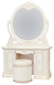 ■商品内容女性の憧れ、エレガントクラッシックなお姫様スタイルのドレッサー&スツール。アンティーク調の家具らしく曲線的なフォルムが多用されており、かわいい猫足デザインが大人ガーリーな印象を与えてくれます...