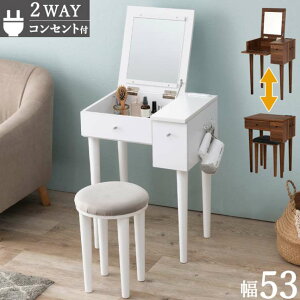 ★送料無料★ 可愛い ドレッサー コンパクト デスクドレッサー 2WAY 作業デスク メイクドレッサー カントリー風 メイク台 ワークデスク 木目調 ホワイト ブラウン 幅50