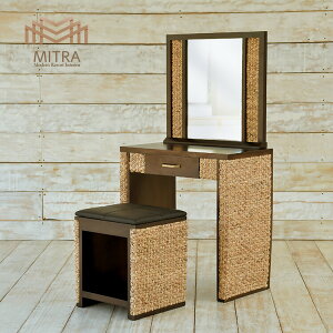 熟練した職人が一つ一つ丁寧に編み込んだウォーターヒヤシンスと 高級木材のマホガニーを組み合わせた「MITRA」のドレッサー。 バリのリゾートホテルの一室にありそうなデザインに一目惚れ。