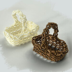 グルビーズで作る4種のかごキット」は、テグスの交差編みで作るミニチュアサイズのかごキットです。そのまま飾っておくだけでも、とっても可愛いく、インテリアやドールハウスにオススメ!「フタ付きのかご」は実際...