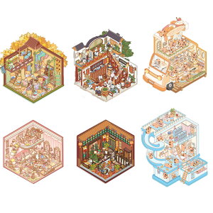 【おもしろい造景シール】シミュレーション型のシール配置ゲームで、平面的なステッカーを3Dの立体的視覚効果で表現できます。自分の部屋を飾り立て、楽しくストレスを解消できます。