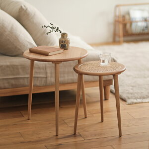 × 奥行き 50cm × 高さ 56cm カラー ナチュラル 素材 ウッドテーブル:天然木オーク無垢材(ウレタン塗装)ラタンテ...