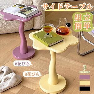 スリムでキュートな花形デザイン! ミニ花びらコーヒーテーブル漫画無垢材ウェーブサイドテーブル 寝室 テーブル ベッド横 ソファ おしゃれ 白 韓国 円形 北欧 かわいい 収納 レトロ