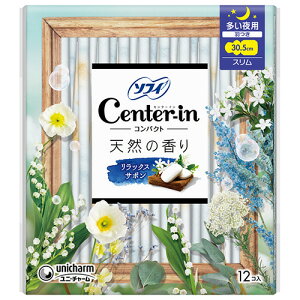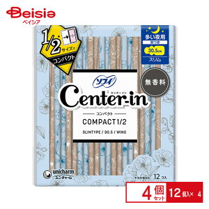 ユニチャーム センターインコンパクト 1/2 フローラル 多い夜用 羽つき スリム 30.5cm (12枚) ナチュラルフローラル 生理用ナプキン ソフィ 医薬部外品 JANコード:4903111312993