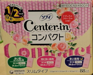 ■ 商品内容ユニ・チャーム センターイン Center-in コンパクト 1/2 羽つき 88個入り(多い昼〜ふつうの日、特に多い昼用、多い日の夜用) 1/2コンパクトで持ち歩きにベスト/5倍さらっと吸収/極上の肌触り...