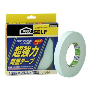 ニトムズ 超強力両面テープ 粗面用S (箱) 20mm×10m J1030 基材:特殊ポリオレフィン系フォーム 粘着剤:合成ゴム系粘着剤 カラー:白 幅:20mm 厚さ:1.2mm 【特長】 ■凹凸面...