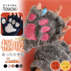 手袋 指なし スマホ対応 猫 ネコ モコモコ かわいい 暖かい 防寒グッズ 高校生 レディース ハンドウォーマー ジュニア 厚手 ファッション小物 防寒 グローブ可愛さも機能性も抜群のあったかitem...