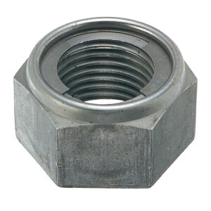 【特長】金属製のフリクションリング部にプリベリングトルクが発生し、それによる摩擦抵抗によってゆるみ止め効果が生まれます。着脱が何回も可能で、ナットの高さは規格品より少し高くなっています。細目なので並目よりゆるみにくく