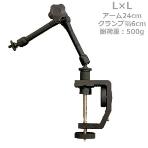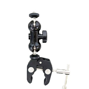 直径3.2cm以内のポールに取り付けることが可能で、三脚の脚、テーブルの脚等様々な所に取り付け可能です。調整ネジで360℃回転、上下前後の長さ調整が可能で、高さ、長さの調整が可能。真上からの撮影ができるので手元撮影に便利です...