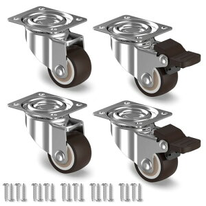 プレート式 キャスター 4個セット ブレーキ付き 360度回転 静音 1インチ TPEゴム輪 自在キャスター ネジ付き ストッパー付き 便利グッズ(ROP-1) 1個あたり許容荷重(Kg):11 車輪径(mm):25...
