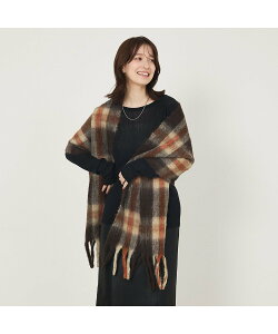abahouse mavie(アバハウス マヴィ)ウール混チェックストール【Design】大き目のチェックが目を引く大判の冬ストール。深いカラーの配色チェックで冬のスタイリングに最適なアイテムです。【Fabric】ウール混で暖かく、と...