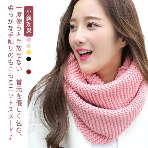 一度使うと手放せない!首元を優しく包む、柔らかな手触りのもこもこニットスヌード♪大きな輪になっている「スヌード」なので、かぶるだけでポカポカ暖かい♪ボリュームたっぷりなので小顔効果も◎!マフラーやストールのように、端