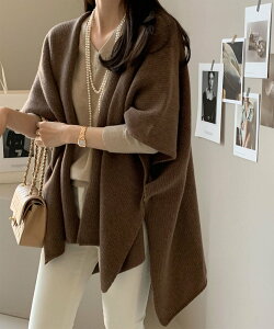 aimoha(アイモハ)【BANICO】ニットショール■デザイン*ゆったりとしたデザインで、サッとカーディガンのように羽織れるニットショール。適度に長めな丈感が、腰回りまでしっかり体型カバーし、暖かさをキープします。■素材*アクリル90%