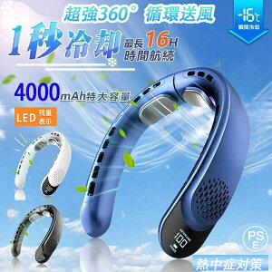 【ハンズフリー首掛け扇風機&涼感プレートで1秒瞬間冷却】 涼感プレートを搭載し、風を感じるだけでなく首元から直接クールダウン! 心地よいクーラー風と首の後ろに装着した冷却プレートで、最低-2...