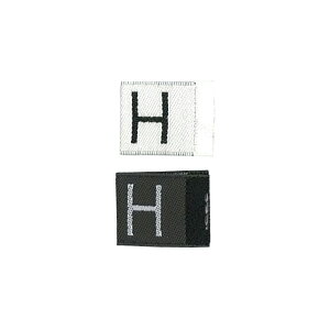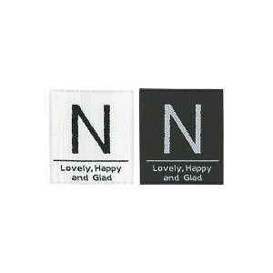 白と黒のイニシャルの入ったタグネームセット。 バッグや子供の洋服の目印として付けられるシンプルなネームタグ