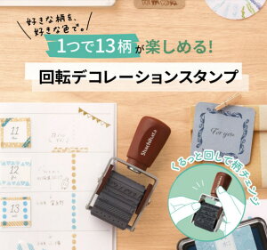【商品情報】 ・1つで13柄が楽しめる回転デコレーションスタンプ。 ・くるっと回して柄チェンジ、好きな柄、色、文字で組み合わせ自由。 ・好きな色のスタンプパットで手紙や日記、メッセージカードを可愛く彩ります。 ・油性スタンプパ