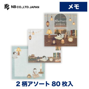 まったりアニマルズ デイ まったり暮らす動物たちのそれぞれの日々を描いたメモ。 キャンドルやライトを灯して書斎で読書を楽しむペンギンを描きました。 2柄アソートで気分にあわせて使える楽しいデザインです。 縦100×横100mm 2柄アソ