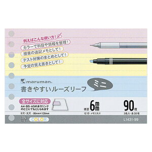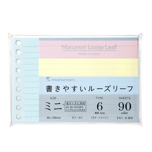 商品名マルマン B7変形 書きやすいルーズリーフ ミニ 6mm罫 90枚 3色アソート L1431-99説明ルーズリーフミニ 3色アソート品番L1431-99この商品について 必ずご確認ください配送に...