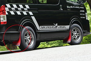【適合車種】ハイエース全車 (平成16年8月〜) 【商品内容】マッドフラップ 一台分セット ブラック レッド 【材質】EVA製(樹脂)