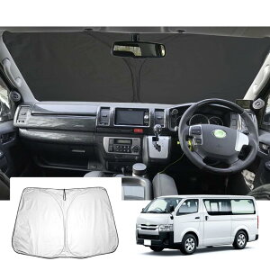 【対応車種】トヨタ・ハイエース 5代目 TRH2##/KDH2##/GDH2##系 2004年モデル〜現行【材質・構造】ハイエース サンシェード 高密度アルミメッキ反射層・ポリウレタン耐熱断熱層・UVチタン銀コーティング断熱層・ナノ断...