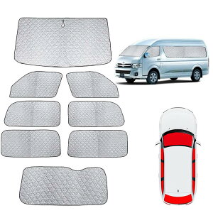 ハイエース 200系 スーパーロング ボディ用 遮光パッド リア7面。自動車メーカーTOYOTA/トヨタ。車種ハイエース。型式200系。グレード4型〜4型後期(5型):コミューターDX パワースライドドア付き...