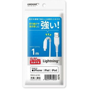【商品説明】 根元を樹脂で強化した高耐久コネクタで折り曲げや抜き差しに強い! 【商品詳細】 用途:充電とデータ転送用高速充電2.4A対応 対応機種:iPhone/iPad/Maclightning搭載モデル カラー:ホ