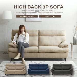 ハイバックでラクチンの座り心地でしかもお買い得な価格の3Pソ 安心の撥水加工!汚れも付きにくく安心です♪ 頭までサポートするハイバックでとっても座り心地がいいソファーです。 しかもビロードのような光沢のある張生地は