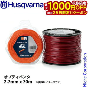 ハスクバーナ ナイロンコード オプティペンタ2.7mmx70m[597669010]▼断面が五角形のオールラウンドトリマーライン。エネルギー効率と切断性能の理想的な組み合わせで、幅広い用途に対応。すべての標準トリマーヘッドに適合...