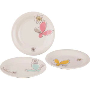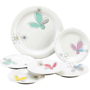 【商品説明】 ハナエモリのシンボルマークでもある蝶が優雅に描かれた大小のプレートセットです。上品なデザインで大切なお客様のおもてなしに、ホームパーティーに大活躍。 材質 磁器 セット内容 プレート大(径24.5×2cm)×1、