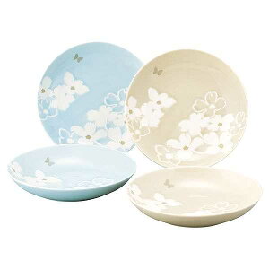 ハナエモリの洗練された華やかなお花柄に蝶が舞い…爽やかで透明感のあるブルーと落ち着きのあるベージュの組み合わせは毎日の食卓を彩り和ませてくれます。日常で使いやすいアイテムの揃ったフルールシリーズです。...
