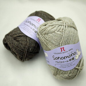 染料を一切使用せず、天然ソノモノの色と質感を楽しめる、エコなシリーズ「ソノモノ」の中細タイプ。 かぎ針編み、機械編み作品のも適したタイプ。 アルパカ特有のカラーとぬめり感のある肌触りの良さが特徴です。 日本製。 ■重量・形状