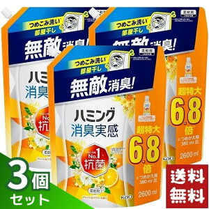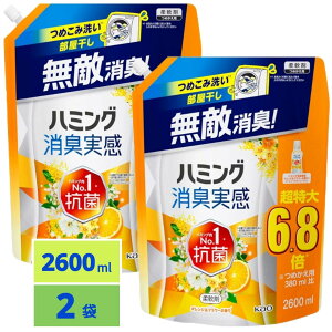 花王 ハミング 消臭実感 柔軟剤 オレンジフラワーの香り 超特大 つめかえ用 2600ml*3。