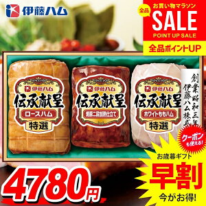 商品名 ■伊藤ハム 伝承献呈ギフト GM-48 商品内容 ■特選 (ロースハム320g、二段加熱あらびきステーキ110g、あらびき燻しウインナー・あらびき芳醇ウインナー各80g) 、焼豚二段加熱仕立て160g...